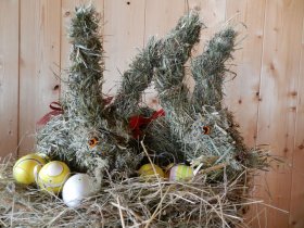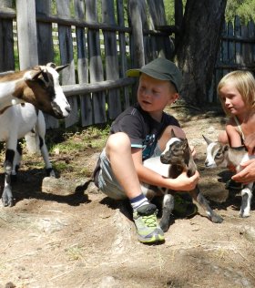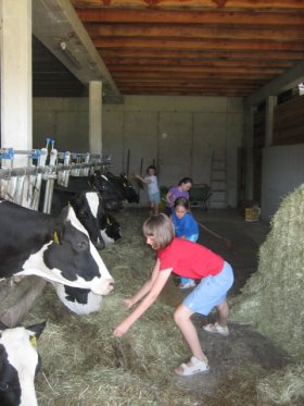 Der Lärchhof ist ein Viehhof mit ca. 20 Kühen, Ziegen, Hasen, Hühnern und einem Pony. Wer mag, darf gerne im Stall mithelfen, die Kühe misten und die Schweine füttern. Es ist aber kein Muss. Besonders gefallen hat mir auch der allmorgendlich gelieferte Frühstückskorb mit frischer Milch, Butter, Quark, Joghurt, Eiern, Brötchen und Apfelsaft – alles aus Produktion des eigenen und der umliegenden Höfe.